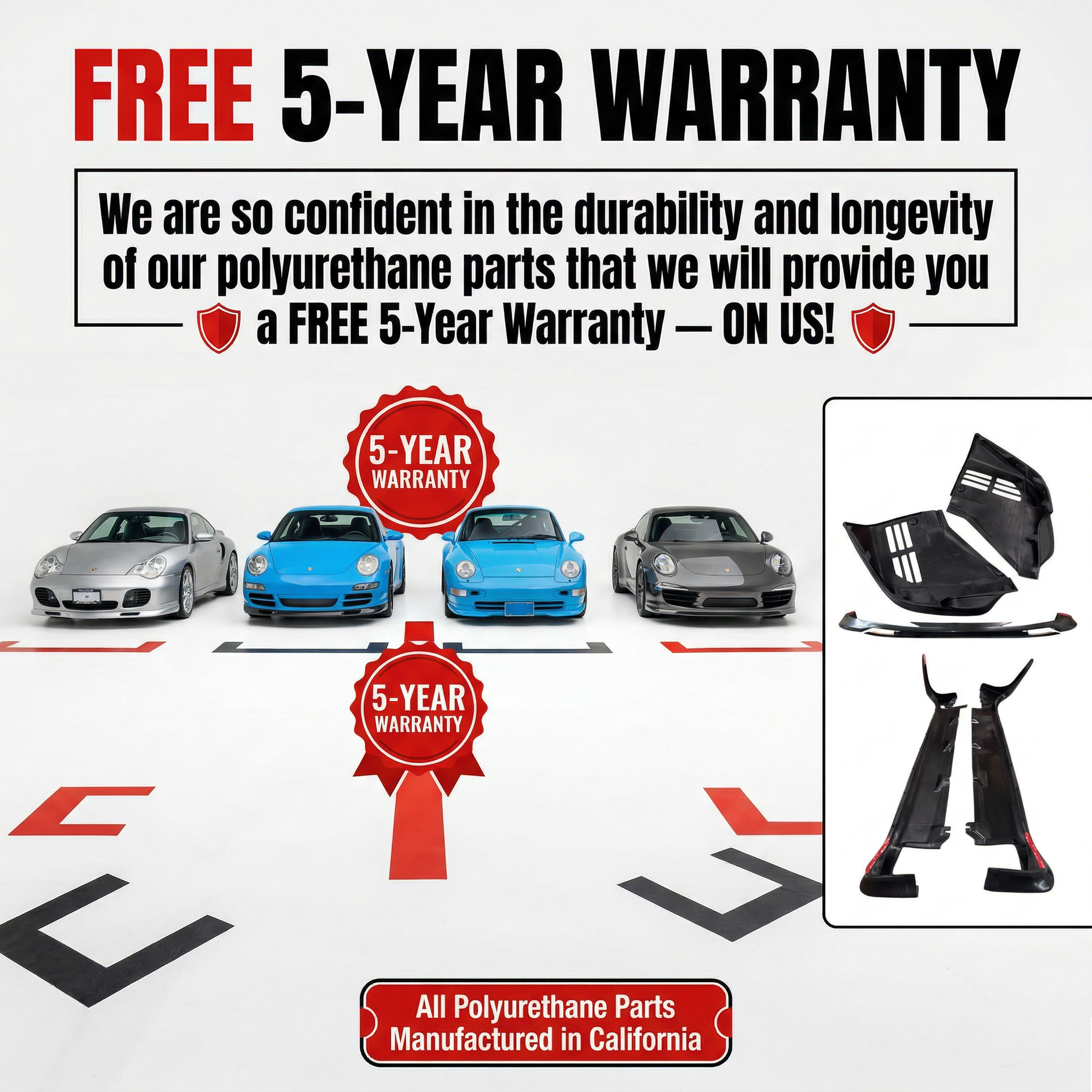 We ship worldwide from our California facility. In-stock spoilers ship within 24–48 hours (Mon–Fri), while backorders dispatch in 3–8 business days. US deliveries typically take 2–7 business days, while international shipments average 5–12+ business days depending on customs clearance. All products are packaged with reinforced edge protection to prevent damage during shipping.